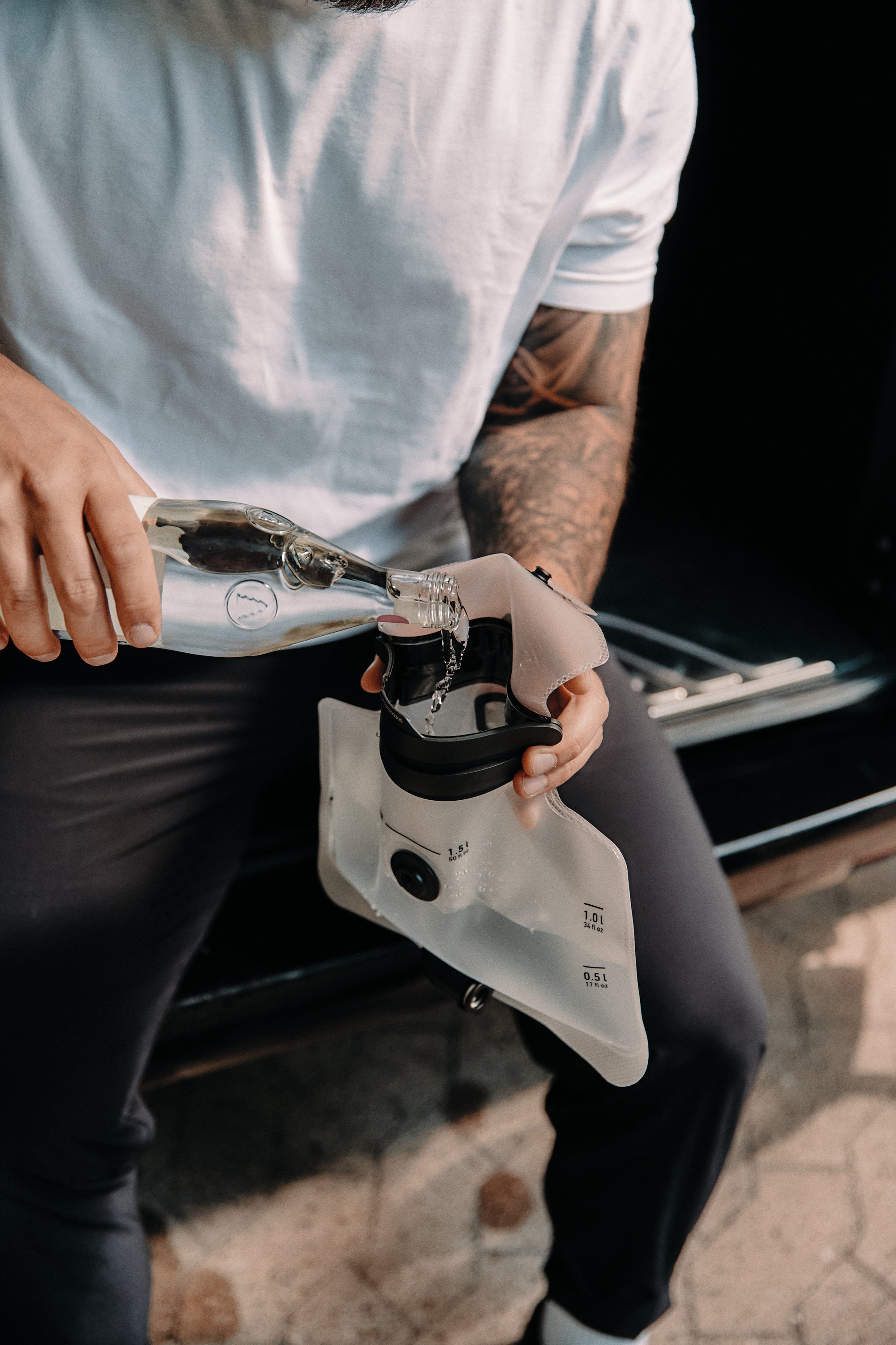 ‘Just let go!’ Quick one-handed operation: Fill water in your bladders and let the three rows of magnets snap shut by themselves.
