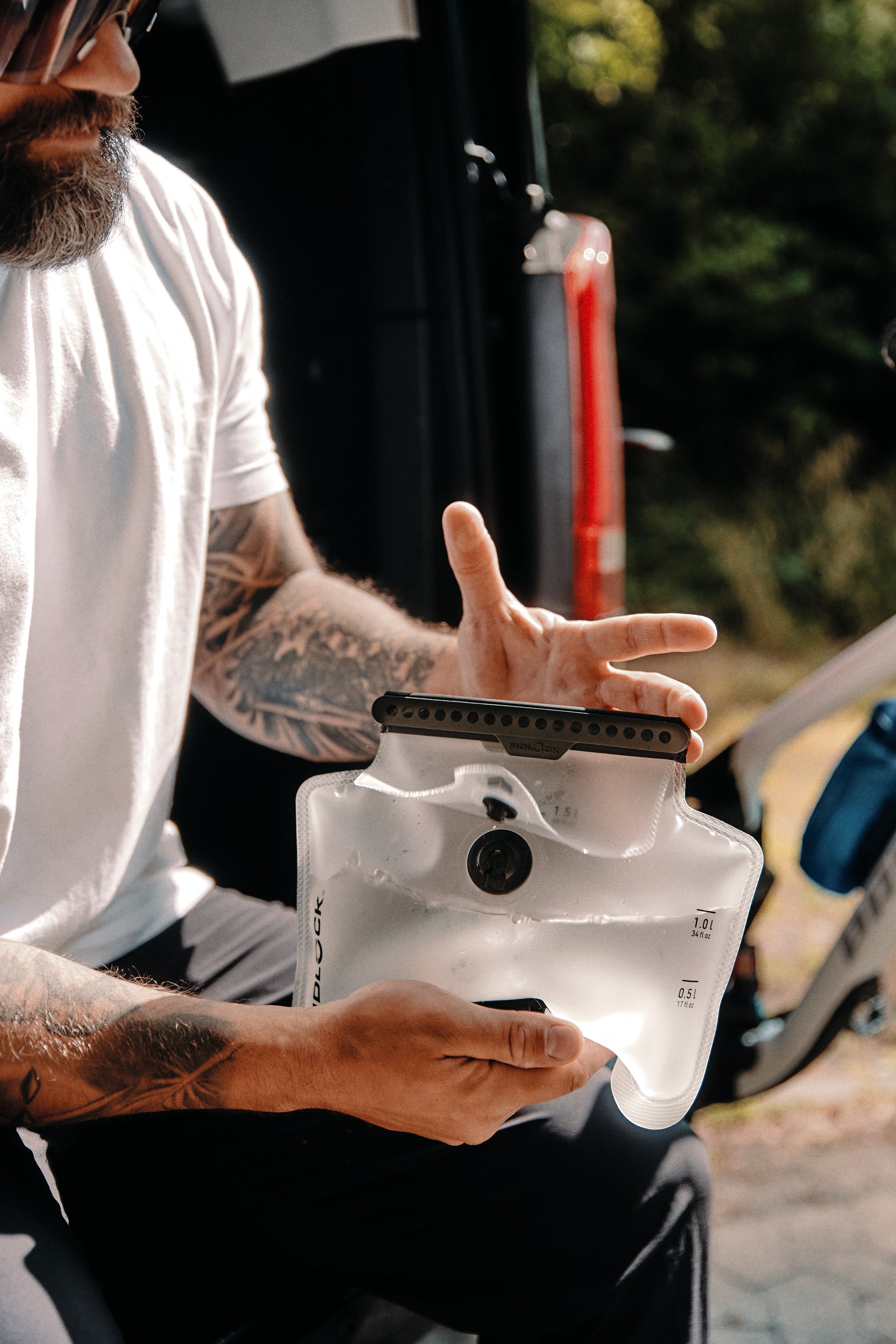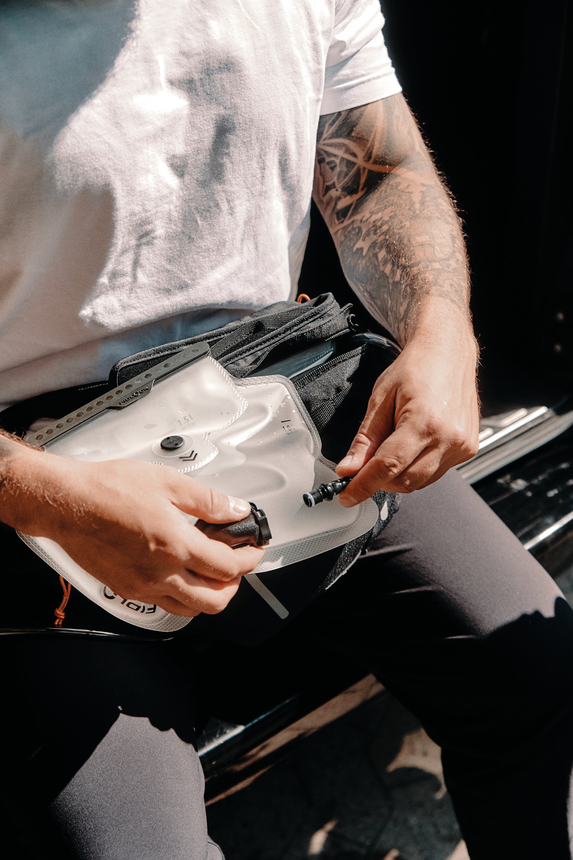 Climbing, biking or hiking – a good water supply is essential. However, you don’t want to spend a lot of time preparing? The HERMETIC hydration bladder is filled with ease and closes immediately and securely. Thanks to the patented closure technology, easy handling is guaranteed, allowing you to start your sporting activity quickly and effortlessly. The hydration bladder has three wide-opening rows of magnets that seal automatically and hermetically – absolutely leakproof. The additional SNAP closure on the pocket flap can be operated with one hand and prevents unintentional opening of the hydration bladder in the backpack during activities. Additionally, the wide opening allows users to quickly and simply clean and empty the bag.