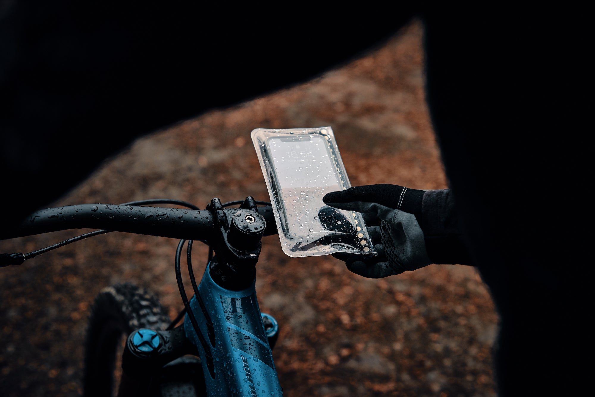 Grâce au principe breveté "just-let-go", l'étui se ferme automatiquement et est entièrement hermétique. Pas de verrouillage, de clic ou de poussée manuels. Une fois encliqueté sur la base VACUUM, le smartphone est protégé en toute sécurité, même sur les sentiers boueux.